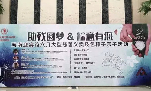 海南迎宾馆举办了“助残圆梦陪你去看海“活动,在慈善义卖活动结束当日紧接又举办了端午包粽子亲子活动,锻炼孩子的动手能力。