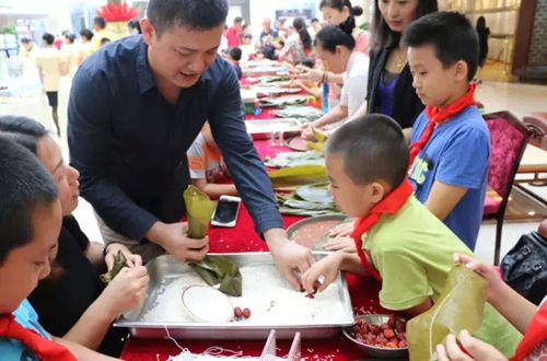 由于6月4日是6.1儿童节过后的第一个周末,马上又将迎来端午节,为了锻炼孩子的动手能力、加深亲子关系,酒店在慈善义卖活动结束当日紧接又举办了端午包粽子亲子活动。