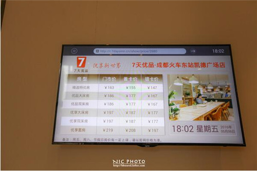 熟悉的“7”logo在前台很显眼的一个地方,简洁、大方、优雅的气质,一直都是7天的一贯风格。