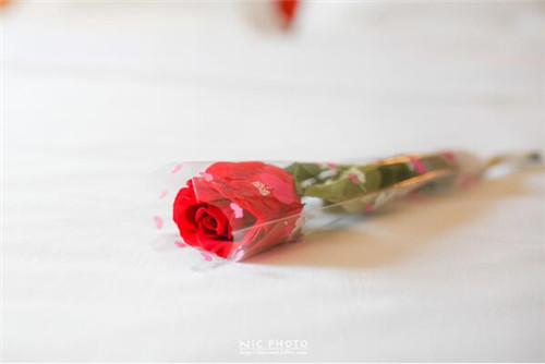 床上还温馨的为每一位客人放了一朵玫瑰花。