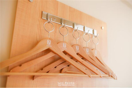 浴室外面是挂着7个印有7天logo的晾衣架。