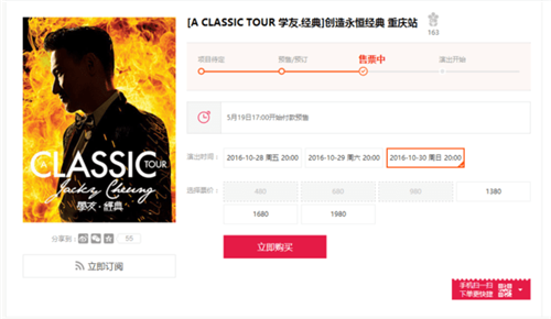 就在预售的当天,一切已经归结到这样的界面!!我不知道你是不是学友粉,我是!这么多年,我最荣幸的一次,就是他上一次巡演,第一次唱《她来听我的演唱会》就在我的面前,我参与的那一次成都站的演唱会本以为这次巡演,还是成都最爽。可是,在我咨询过演艺公司的朋友后,才知道,这一次,最近的演唱会,一定要选择重庆!为什么呢?因为,这一次重庆的演出是四!面!台!