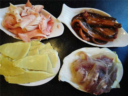 6、黔江鸡杂: 在重庆吃鸡杂最多的地方当属沙坪坝磁器口,那里可以说是鸡杂一条街。将鸡杂用秘制作料拌了,腌一腌进味,然后再放入锅中加秘制汤料煮,再配点血旺、蘑菇、豆皮、竹笋、海白菜、冬瓜、土豆之类,便大功告成。