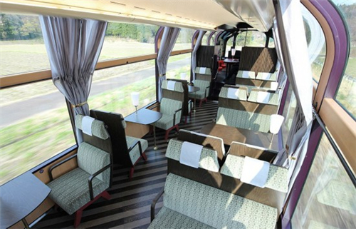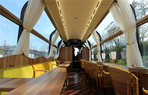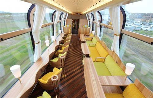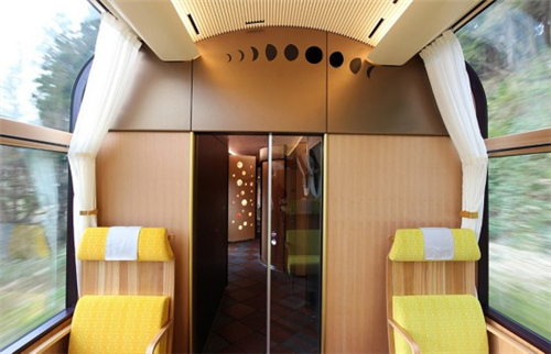 日本设计公司Ichibansen推出的景观列车,车厢壁被巨大玻璃窗取代,以便乘客观赏沿途风光。
