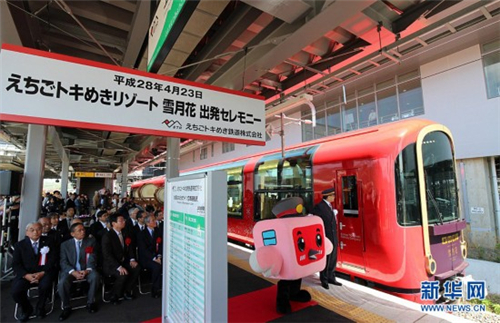 被选中的客人正等待登上观光列车,特别的卡通人物也出现在现场。(网页截图)