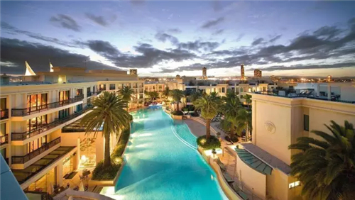 范思哲宫殿式度假村是黄金海岸最高级的酒店之一,出自享有盛誉的女服装设计师贾尼·范思哲之手,酒店的设计豪华,结合了欧洲皇宫的设计特点和传统的罗马时期的古典建筑特色,精湛的内部装饰和手工艺配饰都凸显了华丽和优雅。该酒店曾经获得《豪华旅行杂志》2010年澳大利亚最好的酒店殊荣。全世界只有2间,澳洲和迪拜。
