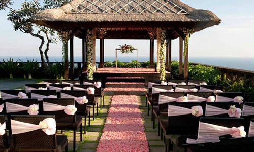 不得不说,国外很多酒店在场景方面已有了先见之明,比如马尔代夫、巴厘岛之类的一些酒店,都会利用天然的海岛海景、沙滩,打造出唯美的场景,让“海岛婚礼”成为其特有的标签。这样一来,很多人都会梦想自己能够举办一场海岛婚礼,因为它是那么的唯美。