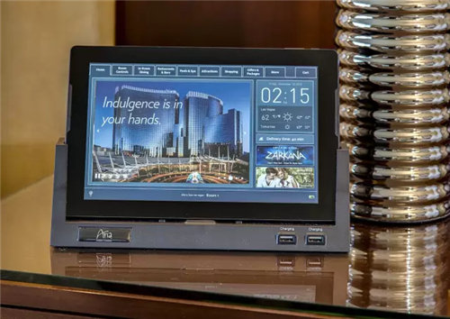 The Aria的智能房型能够检测到客人进入房间并能根据你的喜好启动如自动打开窗帘、播放音乐、打开电视、调节室温等的功能。