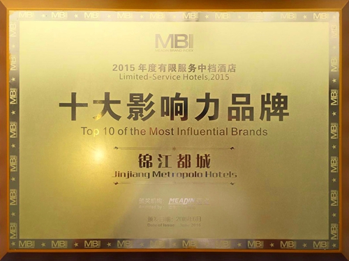 上海锦江都城酒店管理有限公司旗下四大品牌,锦江都城酒店、锦江之星酒店、金广快捷酒店、百时快捷酒店齐获得2015年度酒店业最具影响力品牌。