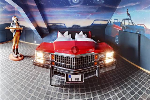 细数全球的特色酒店,大概也只有这家酒店的房间主题、装饰、睡床,才能够得上《速度和激情》。