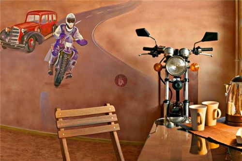 德国人也把象征着美国自由精神的66号公路搬进了汽车主题旅馆里,以摩托元素为主题,在四轮崇拜的情境下为两轮情怀留下一席之地。