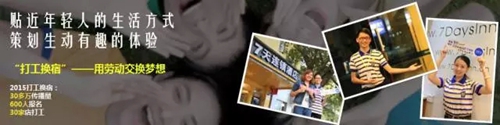 2015年开展的“打工换宿”活动,为消费者提供了一个劳动交换梦想的舞台。消息一经网路发出,便引得全国网友的踊跃报名,第一期600多份报名表中,甚至还有不少高中生和退休法律工作者的身影。