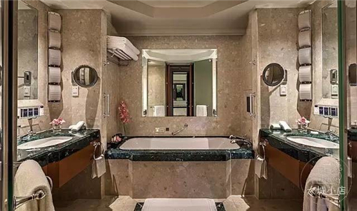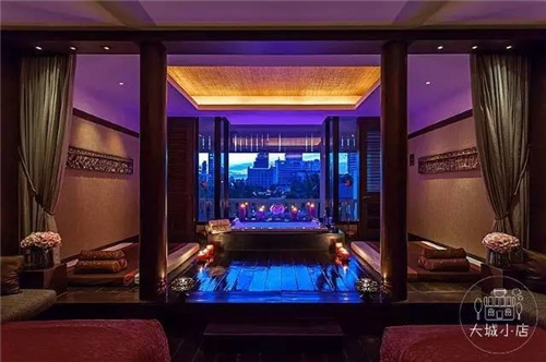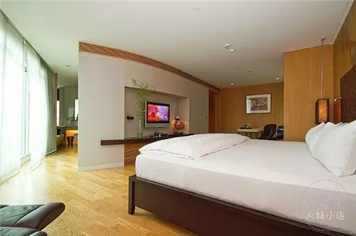 搭乘着“暗黑系”的电梯来到房间,一推开门就立刻感觉到房间处处体现着创意和格调。设计以欧洲古典风格为主,并搭配以旅行为灵感的元素,比如房间里好似复古行李箱的收纳柜设计,就连房里的电视设计也彷佛一幅复古的画框,带有立体浴缸的浴室虽然带着浓厚的欧洲设计,却恰到好处地加上了一些泰国元素,比如玻璃墙上拥有很多复古泰式的图腾,非常独特。