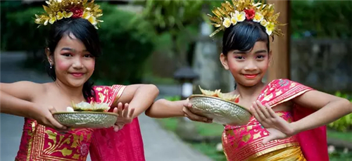 巴厘岛Amandari门口着盛装欢迎客人的当地孩童