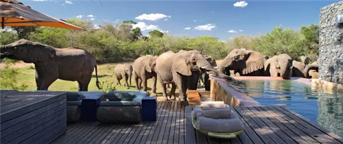 一般来说,顶级营地都会设置在各个保护区的核心区域内,然后营地非但没有任何护栏以便野生动物自由出没,然后一般还会特意的修上饮水点来吸引动物。更有甚者,就连吃晚饭的时候都要需要专人陪护来到餐厅然后晚饭结束后送回房间后就立即锁门再也不能出来了。