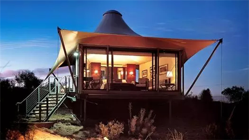 值得一提的是这15个帐篷分别是以15位最先找到艾尔斯岩的先驱的名字所命名的,每间房间里都有每一位先驱的纪念品以及简述。同样为了更好的保护当地环境,酒店的全部设施都选择了用钢柱架高房间避免跟沙丘以及当地神态环境直接接触。