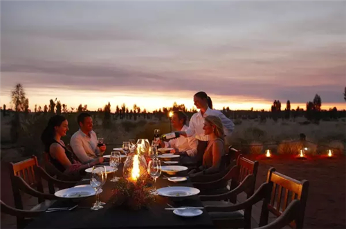而更值得一提的是酒店的菜单,一伙子的北领地特色美食-澳大利亚龙鱼、袋鼠肉、鸸鹋肉、鳄鱼肉、野菜沙拉以及当地甜品,而酒足饭饱之后,在沙丘上找个靠垫或躺或卧,守着一位天文学家眺望满天繁星,听他慢慢述说南方夜空星星的故事。这样的一晚一般价格也是在1100美金每人每晚左右,旺季可能会高些,不过价格没涨太多还算是公道。
