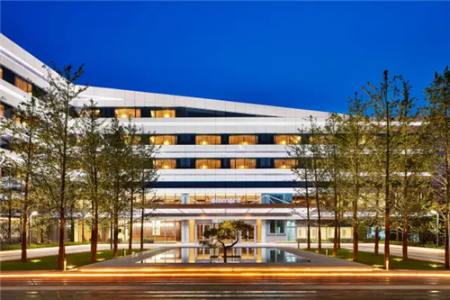 苏州科技城源宿酒店以“盘龙叠院”为设计理念,以苏州园林精髓为设计灵感,将中式景观庭院与现代科技环保建筑融为一体,建筑主体采用则8字形设计,使酒店90%的区域自然采光,室外富有设计感的LED灯带作为景观照明灯,在智能控制下美化酒店景观的同时降低了能源消耗,充分体现了绿色环保的可持续发展理念及多元文化的精妙搭配。