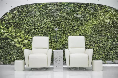 不同于以往美甲店排座的方式,这里的六个座位是向心排布的,顾客在美甲的同时也可以愉快的交流。LED发光灯膜结合螺旋钢板,营造出柔和均匀的室内光环境。植物墙作为整个空间的绿色背景,使新空间富于生机。螺旋曲线与原有方形店铺的空隙自然形成了前台展示、植物景观和员工服务等辅助空间。