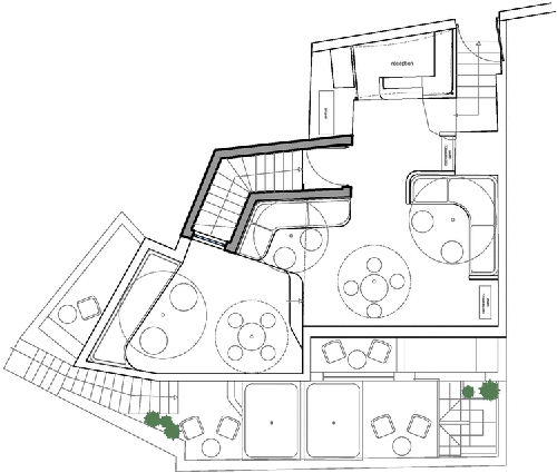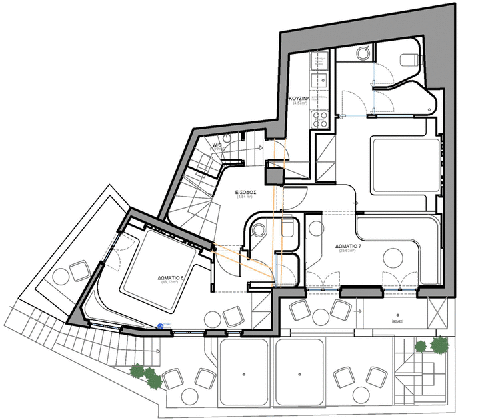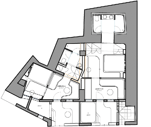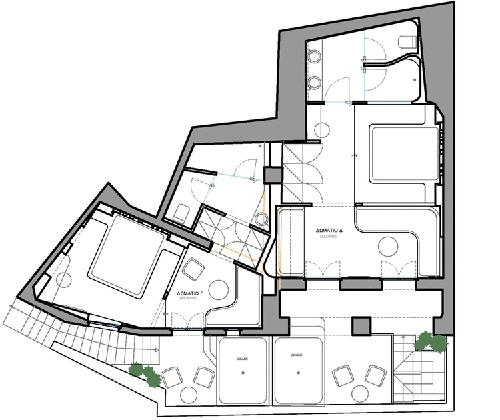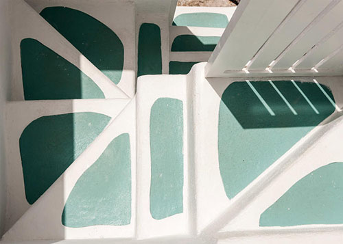 建筑事务所 KLab 拿到的是建于 1970 年代的一所大房子,有 350 平方米,建筑师将 4 层楼分成了 6 个套间,下面三层每层两间,最上面是一个可供休息的长沙发。使得每一个房间都有卫生间和阳台,有一个好的视线去看海边。室内的拱形结构也来自原有建筑,就像是岛上的建筑一样,他们就将混凝土地板和墙面打上蜡,涂上浅蓝、浅绿等颜色,使它显得明亮而柔和。