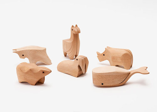 2012 年,Karl Zahn 为美国设计网站 Areaware 设计了几件小的产品,主要分为动物盒子和钥匙串两类。木头做的犀牛、北极熊、美洲鸵、鲸鱼、公牛等组成了一个动物家庭,它们都可以打开成一个可以放戒指、耳环的小盒子,非常可爱。动物身上也没有任何彩色花纹,只有一个黑点作为眼睛,那些木头原本的纹路就增加了动物盒子本身一种手工的感受。