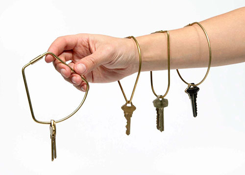 至于钥匙串则使用了 Karl Zahn 擅长的黄铜,圈成一个大的方形、圆形、扇形等圆环状,可以串在手中或挂起来,看上去有一种令人熟悉而又陌生的感受。