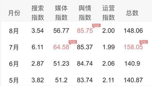2016年5月——8月诗莉莉酒店迈点品牌指数