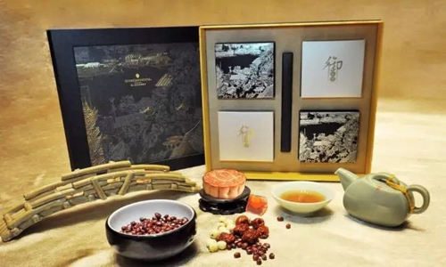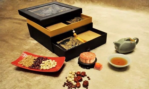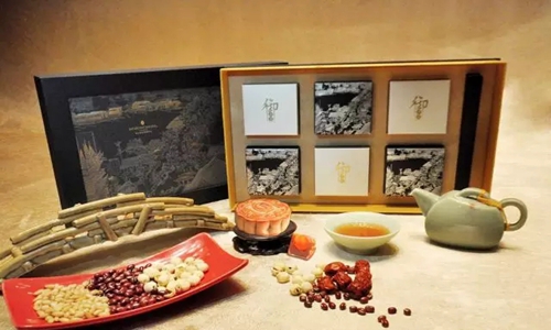 花好月圆礼盒Full Moon Reunion Gift Pack。民币:238元蛋黄白莲蓉,金腿五仁,金沙奶黄,翡翠班兰莲蓉,红酒蔓越莓,陈皮粒粒豆沙,六个装。