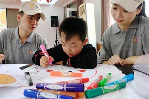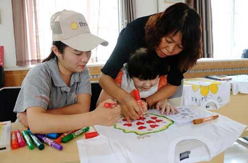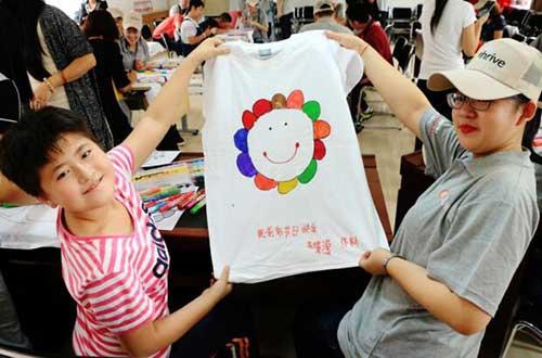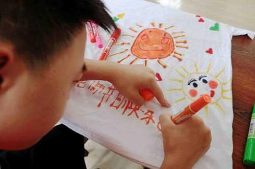 志愿者与睿智学校的孩子们一起,用画笔在T恤上画出一幅幅富有创造力的多彩图画,孩子们也一笔一划的写下了对老师的节日祝福与感谢。每一个孩子在画画过程中露出的无比真挚的笑脸是最感染志愿者们的。