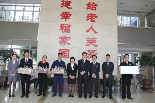 公寓内年龄最长的102岁奶奶看见志愿者们的到来更是高兴地站起来连忙与志愿者们挥手问候,志愿者们年轻的活力给爷爷奶奶们带来了无尽的欢快与喜悦。酒店总经理作为志愿者的一份子更是号召各界年轻朋友们一起关爱老年人,以实际的行动为公益事业贡献点滴力量,铭记承担企业的社会责任,并表示以后这样的活动还会更多,希望能有更多的机会和社会各界人士一起参与到“关爱老人·送温暖”的公益活动中。