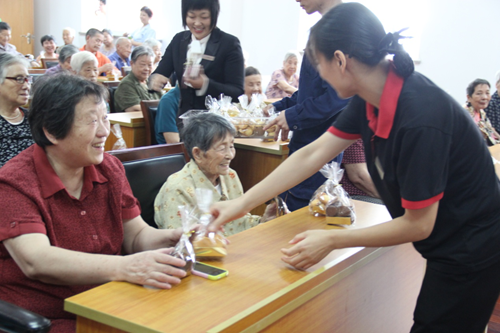 2016年9月12日,“关爱老人·送温暖”的老人关爱活动在江苏省江阴市“夕阳红老年公寓”温情呈现,来自江阴长晟温德姆至尊豪廷大酒店的志愿者们备足了各式惊美的节日礼物,有新鲜进口的各式水果,还有由酒店总厨们亲自制作的各式精致小点心和中秋佳节必不可少的月饼,为“夕阳红老人公寓”可爱的爷爷奶奶们送上了中秋佳节的节日问候与祝福。