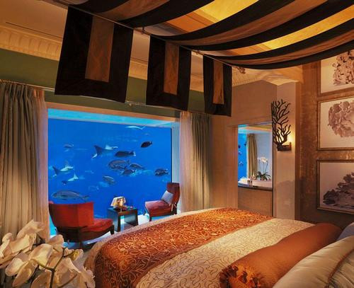 亚特兰蒂斯大酒店:该酒店是迪拜的五星级酒店,装修奢侈豪华,其中一间水下套房“海王星与波塞冬”能够同时容纳5人入住。房客能够在房内观赏巨型水族缸里的6.5万条鱼,仿若走入了奇妙的海底世界。酒店每晚的住宿价格为5500英镑(约合人民币54000元)。