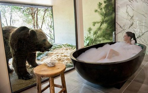 贾马拉野生动物旅馆:该旅馆建在澳大利亚的动物园内,分布在动物园的三处地点,共有18间客房。房客不仅可以与熊共浴,还能狮子共进晚餐,以及从卧室阳台喂长颈鹿等。豪华客房的价格为460英镑(约合人民币4510元)。