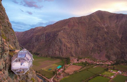 悬崖边的套房:这家酒店建在秘鲁的一处悬崖上,墙壁和屋顶都是透明的玻璃,既能抬头欣赏漫天的繁星,也能低头俯瞰深邃的山谷。但由于酒店建在悬崖上,入住的房客需要先通过索道,再攀爬近400英尺(120米)才能到达,而酒店每晚的费用是180英镑(约合人民币1765元)。