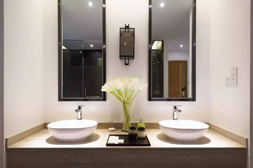 漓筑二期洗手池旁边、露台上的小桌子上、房间里一束束的花朵,浴室里充满日式简约精致的香氛……书吧、水吧、小餐厅等小憩的几个公共区域布置得精致温馨,非常舒服。