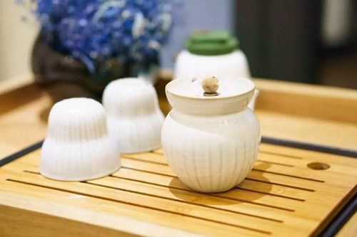 木质茶具,白色茶碟,气质柔美,风格简约。一个角落,一缕茶香,便又让人回到了绵延数千年的中国古韵当中。