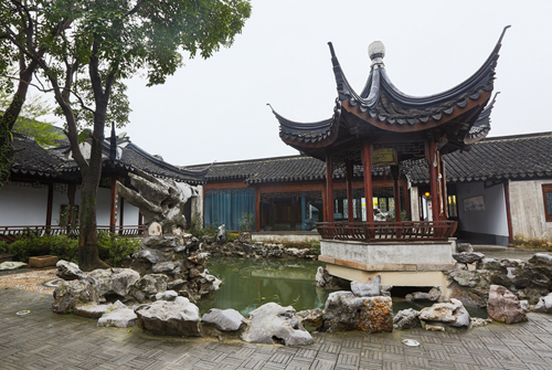 走进酒店大门,迎面而来的是典型的江南园林建筑风格,园内有花园庭院、桥廊台榭,既古朴雅静、又舒适宜人,恰如旧时江南私家园林,与荡口古镇“小桥、流水、人家”的诗意江南相映成趣。