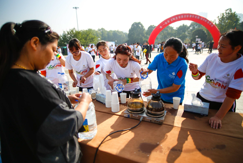 活动现场姜茶及矿泉水供应,无一不体现金陵的细意浓情
