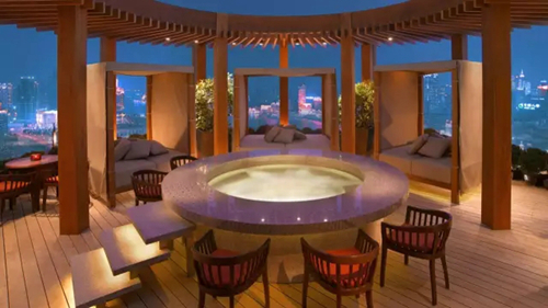 它更像一个私人住所。入口处由2万多瓶红酒装饰而成。一边在按摩池里放松身心,一边品尝美酒,一边欣赏江景,世界之巅的感觉便是如此吧!