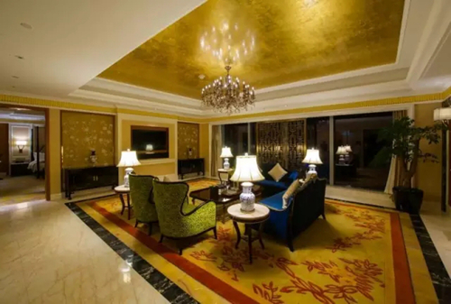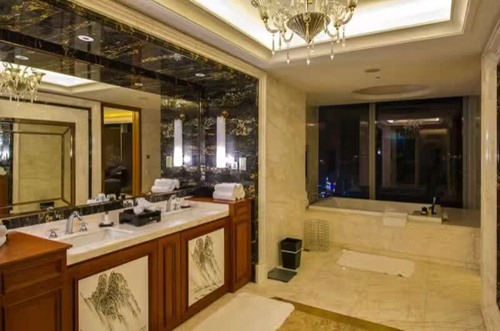 总统套房尽显舒适的奢靡气息,设有主卧、书房、会客厅、餐厅、大浴室、衣帽间、干蒸房、保镖房等功能区。大大的全景玻璃窗可以让你尽情欣赏福州城的夜色。