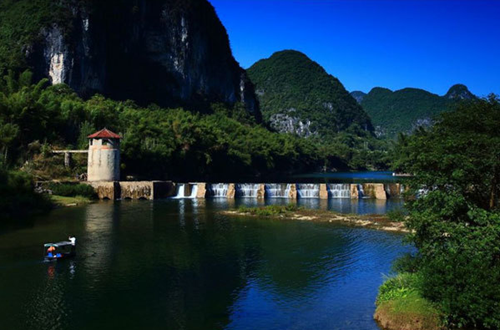 酒店周围景点众多,如刘三姐故里景区、宜州会仙山景区、下枧河、壮古佬景区、四牌楼、白龙公园、西竺寺、宜州博物馆等。“一块碧玉水上浮,万芊翠竹成绿洲;游客驻足不想走,走了梦中又来游。”宜州市下枧河风光秀丽,被称为“第二条漓江”。河水碧绿,清澈透底,全程水路12公里。沿岸峰峦叠嶂,翠竹依依,奇峰怪洞,尽收眼底。下至三江岔口汇入柳江,沿途翠竹躬迎山歌悠扬,下枧河风光特点是水碧、竹翠、洞怪、峰奇,并且包含着刘三姐的传奇色彩。