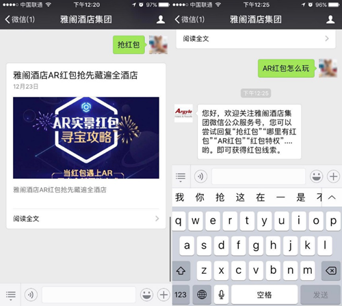 12月23日,圣诞节平安夜来临的前一天,雅阁酒店集团推出“雅阁酒店百万AR红包藏遍全酒店”的活动。