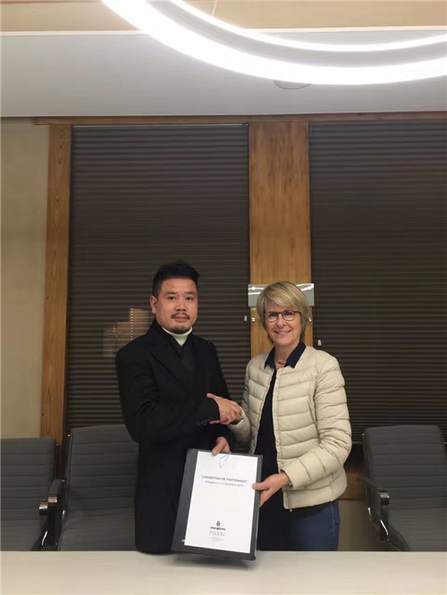 柏栎酒店管理集团CEO华德明先生与法国梅杰夫市长Catherine JULLIEN BRECHES女士签约集团酒店、滑雪场、私人飞机、教育的整体合作