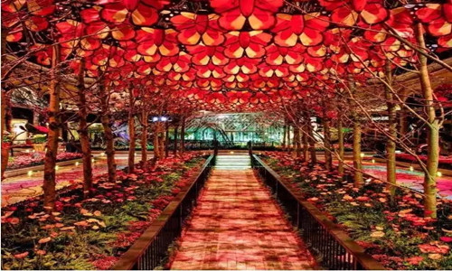 除以上这些,宝丽嘉还有一个法宝就是堪称世界上最为壮观瑰丽的阳光玻璃房和植物园,这个一千三百平米的玻璃房定期变换主题,春夏秋冬和春节是五个固定栏目。