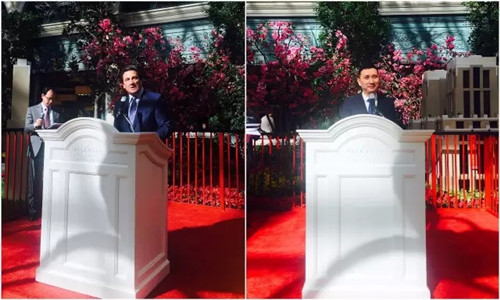 苏宁控股集团副总裁金明先生(右)和美高梅国际度假集团总裁比尔•洪巴科先生(Mr. Bill Hornbuckle,左)分别致辞。