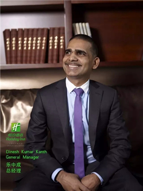 乐中成先生在中国工作多年,非常了解中国礼仪之道,凭借对中国文化的满腔热忱以及出色的管理才能和丰富的管理经验,他将带领管理团队秉承假日酒店“始终真实 展现真我”的品牌服务行为理念,为打造客人挚爱的杰出酒店,创造更多卓越的成绩!