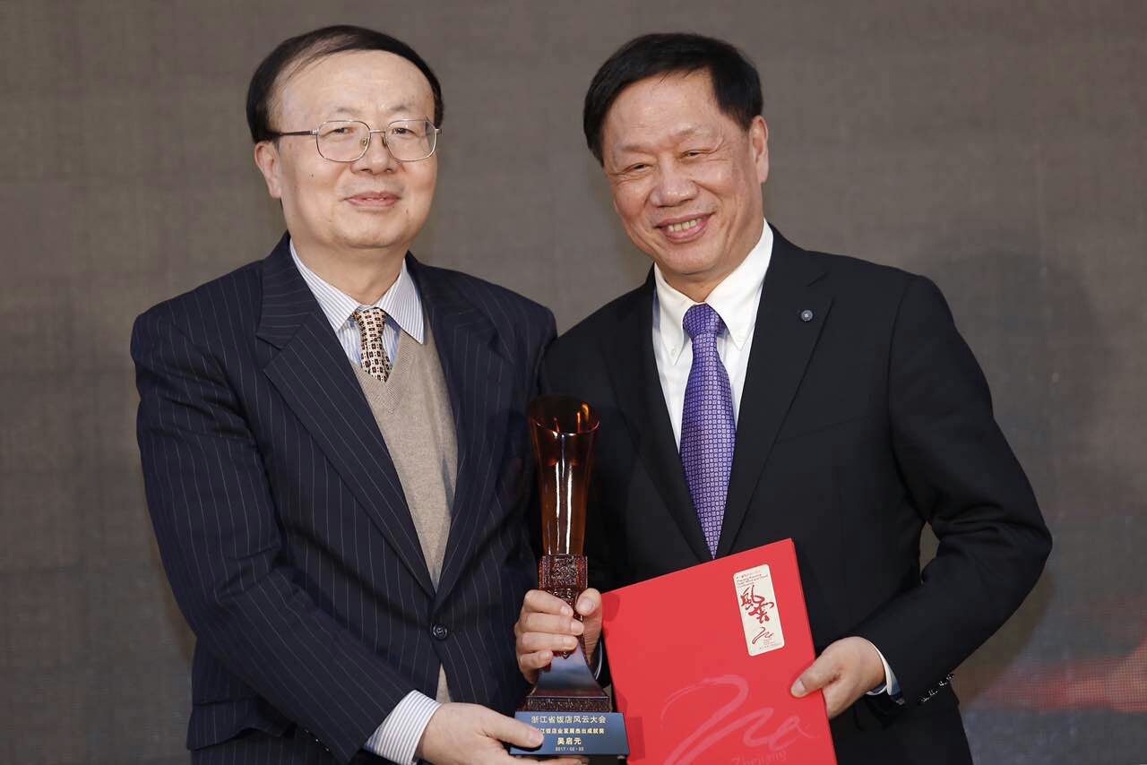 日前,浙江省饭店风云大会暨浙江省饭店业协会第三届二次理事会在杭州隆重举行。君亭酒店董事长吴启元先生荣获“杰出成就奖”。