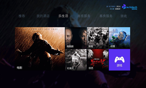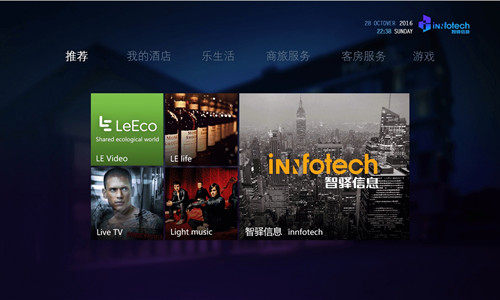 站在酒店管理的角度,智驿信息酒店视讯集成服务系统,利用尖端的技术为酒店提供数字电视增值应用与服务解决方案,突出了大屏互动特点,将诸多功能集于一身,如酒店特色屏幕首页设计、乐视强大的版权内容和自制内容资源、云服务运营平台、超级电视智能终端和多样化的功能性应用等,都为酒店管理者提供了更加高效的宣传管理手段,使酒店物耗、能耗、人员成本降到最低,创造更多的效益。