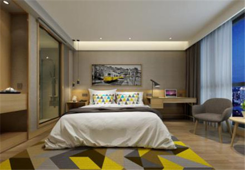 大堂作为入住酒店的第一印象固然重要,内部客房设计自是酒店住宿的重心所在。榴莲小星2.0岂会疏忽大意。升级后的客房抛弃了绿色冷色调,而改用充满活力与想象空间的暖色调黄色,可以看出这与大堂色调一致。黄色的加入让整个2.0产品更加跳脱且具趣味性。相比俗套的连片式设计,三角形堆砌排列组合不仅与酒店品牌形象榴莲相吻合,更为客房增添灵动与朝气。客房内可移动的组合家具不仅具备与传统固定家具同等的功能,还可依照个性随性组合,最大可能适应空间同时,给予年轻人充分的自由,随心所欲布局自己的一亩三分地,这便是榴莲小星提倡的“Be yourself”个性化住宿体验。