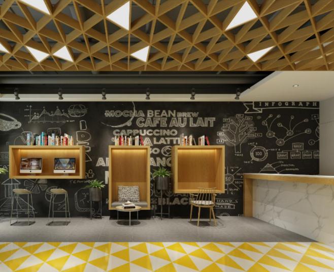 从酒店方曝光的设计图中可以看出,此次产品升级颇具匠心也很符合品牌特色。充满青春朝气的黄色主色调,仿佛在透露着“这是专为年轻人打造的酒店”的信息。工业化设计极大的满足了85、90后设计喜好,多功能大堂的布局,如果不告诉你这是在酒店,恍然间以为走进了社交场所。“Young Time”功能区的艺术涂鸦墙设置,更自由的阅读社交体验,摇椅吊篮搭配的艺术装饰物等等都让大堂氛围轻松愉悦,这样的设计正合年轻人的旅游社交之意。